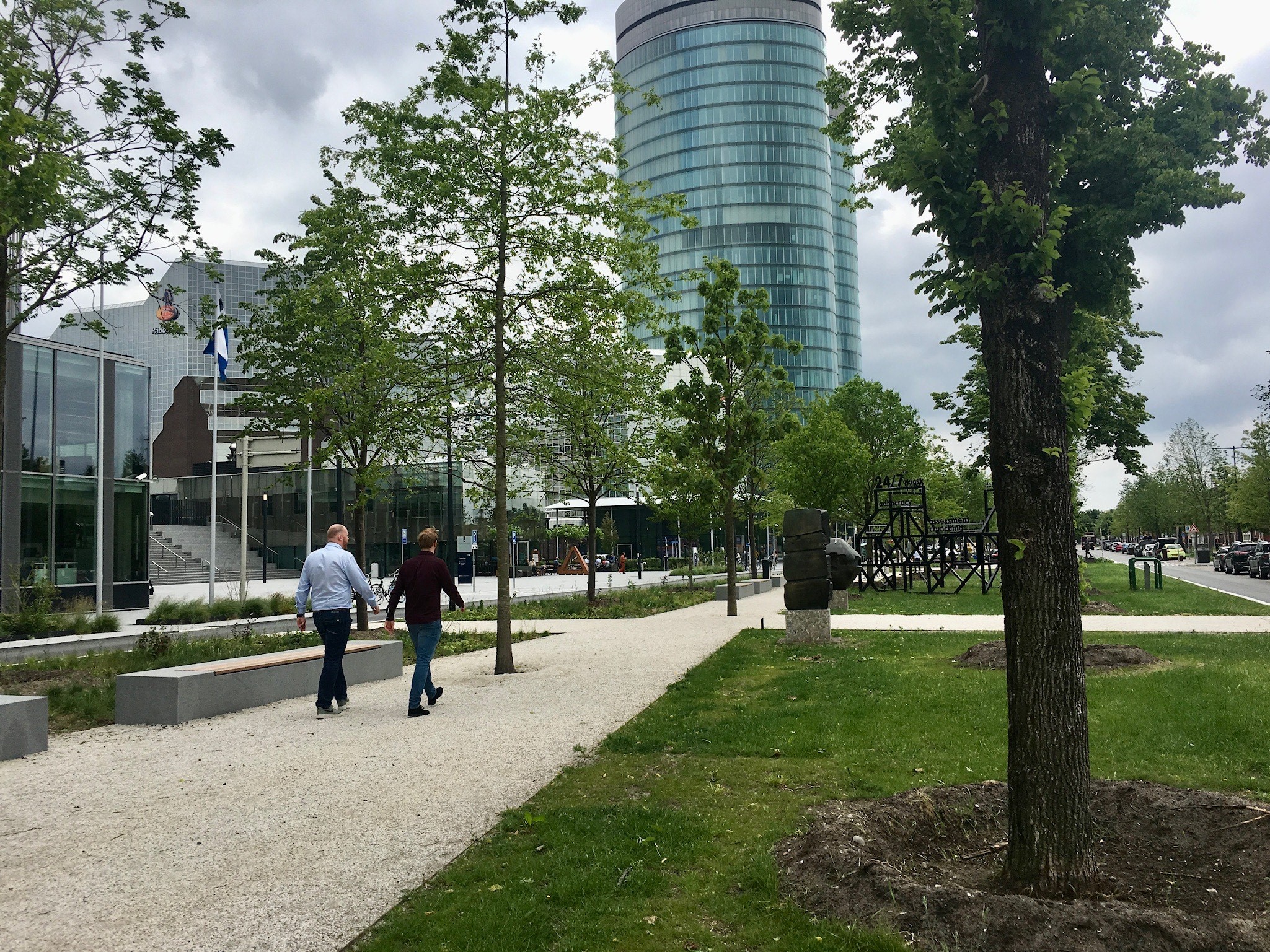 Kilometers maken op een reguliere kantoordag? Martine de Vaan bewijst dat het kan. Ze is initiatiefnemer van Weeting – Have a walking meeting en innovatiemanager van het Rijksvastgoedbedrijf. Ook is ze projectleider van de Citydeal Ruimte voor Lopen. Bewegen integreren in het werk is essentieel, vindt ze. “We hebben niet genoeg discipline om pauze te nemen of in onze vrije tijd voldoende te bewegen. Bovendien compenseert sporten ná de werkdag niet voor de negatieve gezondheidseffecten van een hele dag zitten. Onze maatschappij is er onbedoeld op gericht om ons de hele tijd te laten zitten. Met alle technologie die we hebben hoeven we eigenlijk niet meer op te staan. Daar komt de werkcultuur nog bij: de gedachte is dat als we gaan lopen, dat we dan niet aan het werk zijn. Dat zit heel diep.”