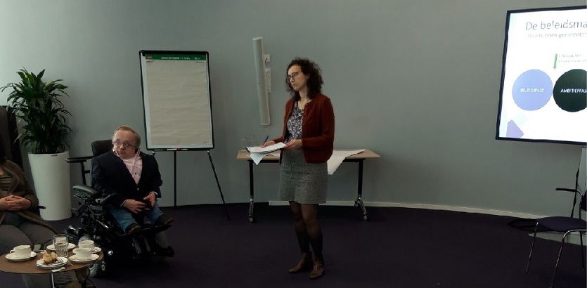 Ook Rick Brink vindt dit een goed idee. "Het is nu nog te vrijblijvend." Brink adviseert gemeenten om inclusieambtenaren aan te stellen. "Zorg dan wel voor continuïteit. Nu zijn het vaak tijdelijke ambtenaren." De gemeente Amersfoort heeft inclusiewerkgroepen ingesteld om mensen met beperkingen aan het begin van een project erbij te betrekken. Ook om de verschillende belangen goed te kunnen horen en de beste oplossingen te vinden. "Veel ambtenaren hebben het thema toegankelijkheid nog niet in hun DNA", zegt een deelnemer vanuit de gemeente. Eigenlijk zouden nieuwe collegae een cursus moeten krijgen over toegankelijkheid. "Bewustwording is het sleutelwoord", aldus Brink. "En we moeten kijken vanuit een ander perspectief", zegt Eva de Ruiter. "Een inclusieve, holistische blik." En dat kan alleen als de mensen met beperkingen gehoord worden.