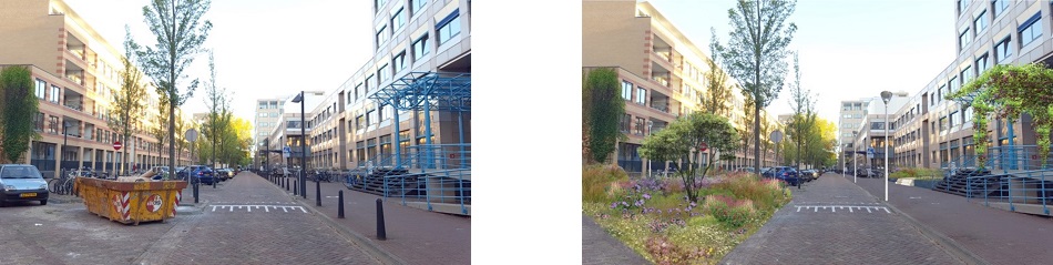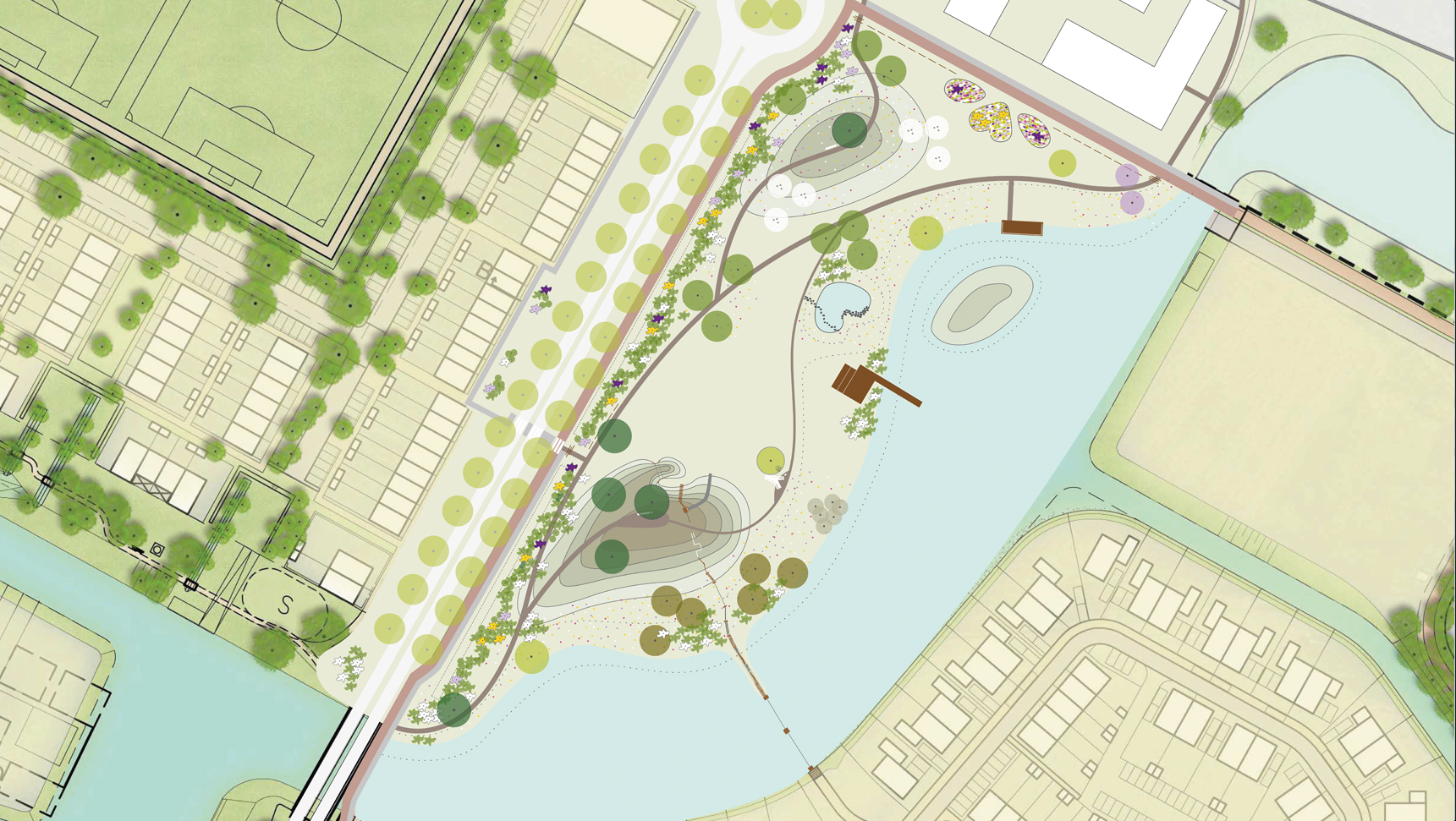 Ten slotte wordt ook de leefomgeving zelf, de openbare ruimte uitgewerkt in co-creatie met de stakeholders. Hieronder een voorbeeld van een ontwerp van een natuurinclusief en klimaatadaptief park; de centrale ontmoetingsplek voor de wijk Parijsch in Culemborg.