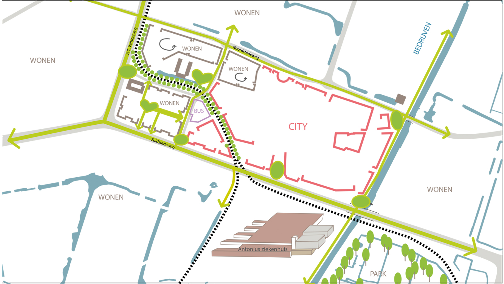 Voor een klimaatadaptieve, natuurinclusieve en gezonde gebiedsontwikkeling is een samenhangend groen-water netwerk een ‘must’. Die samenhang moet je als eerste regelen, als kaders voor de bebouwing. In de grootschalige binnenstedelijke ontwikkeling van City Nieuwegein bleek het kansrijk te zijn om het netwerk van groen en water hand-in-hand te laten gaan met een langzaam verkeer netwerk. Ook hier wil je optimale samenhang om lopen en fietsen te stimuleren, maar ook ‘mooie, groene routes’ blijkt uit praktijkonderzoek een grote stimulans te zijn.