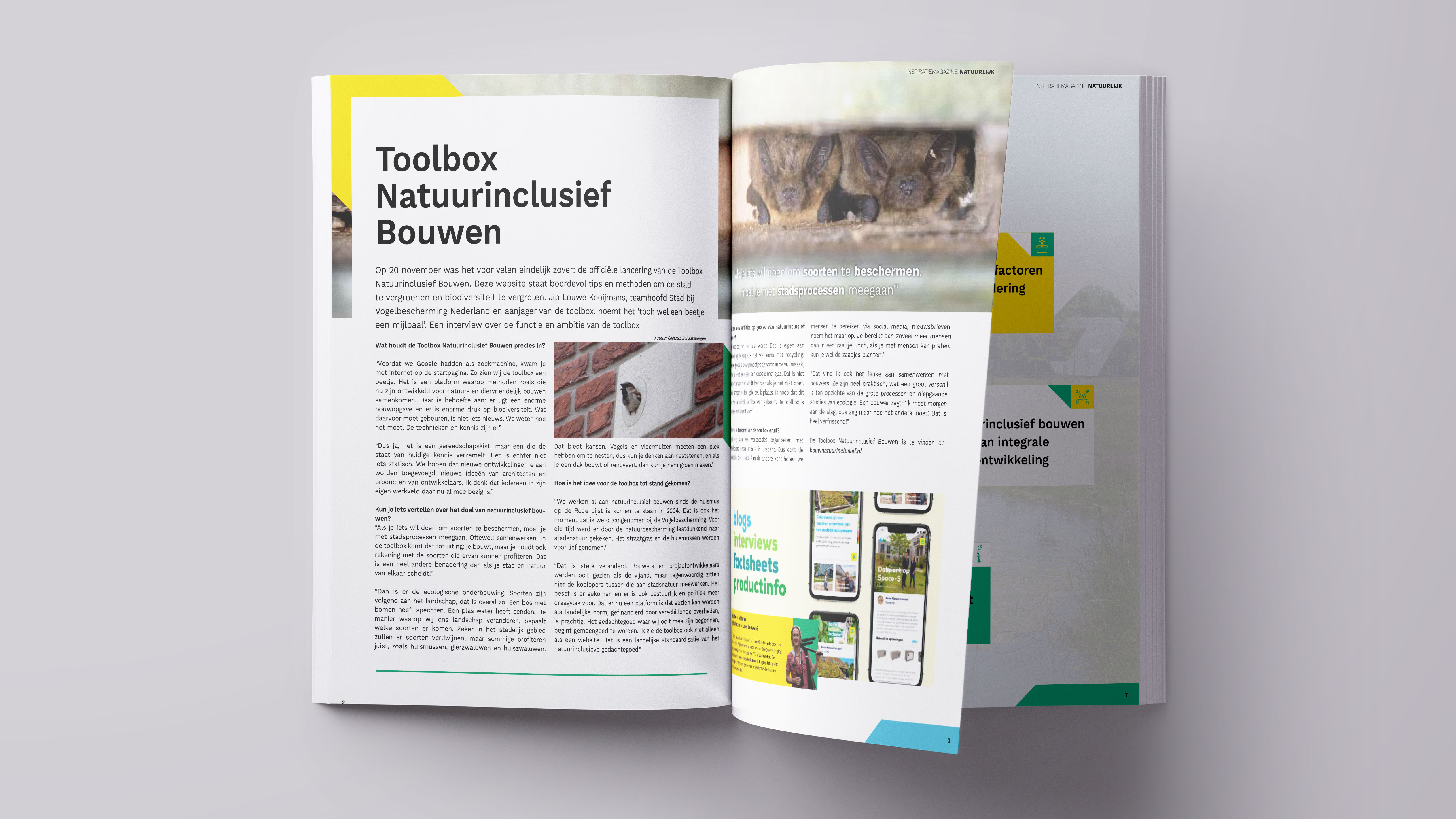Mis het niet: vraag nu gratis een exemplaar van het Inspiratiemagazine Natuurinclusief Bouwen op. Doe dit vóór woensdag 18 december, dan ontvangt u de editie op 7 januari 2020.