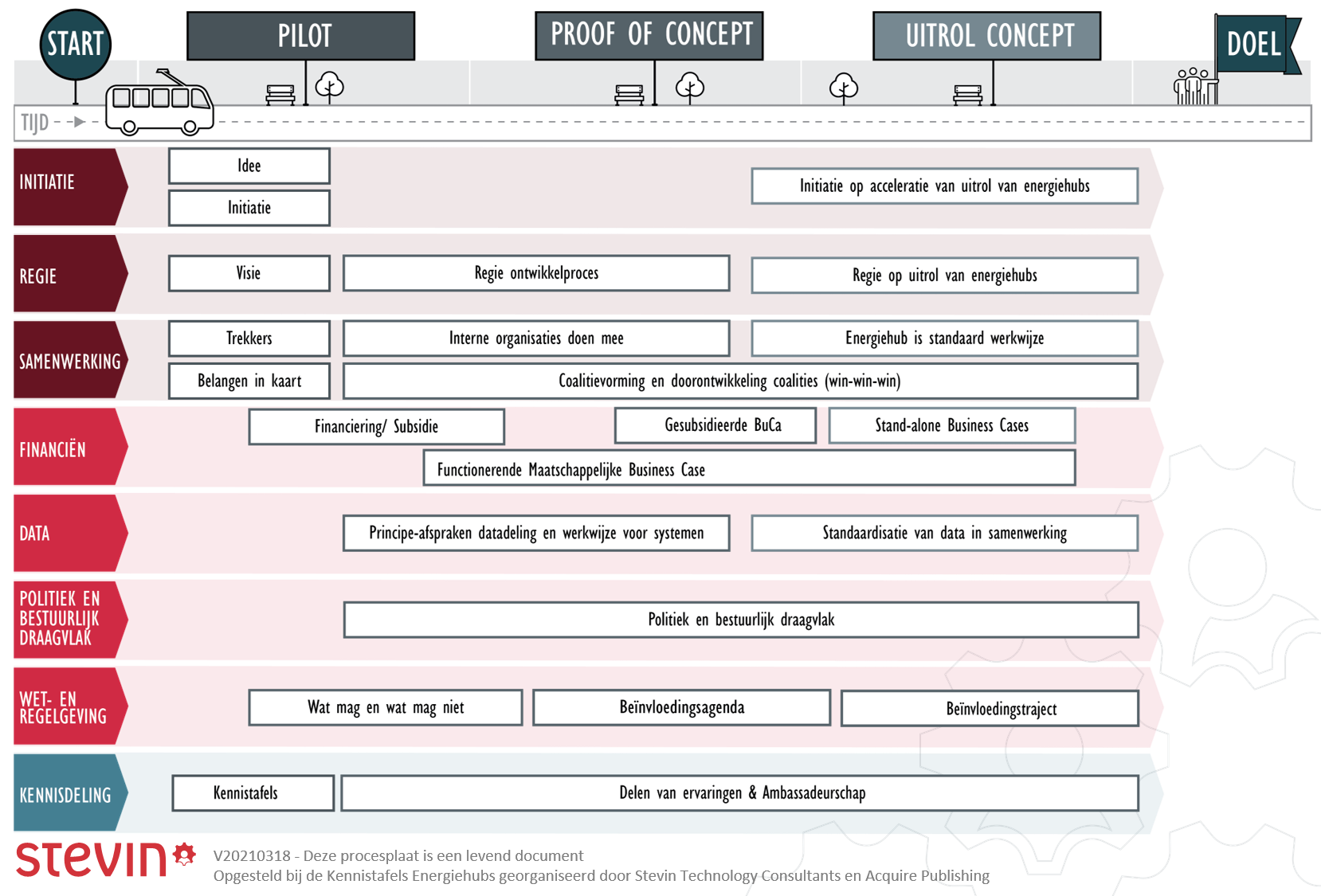 De tweede Kennistafel Energiehubs op 18 maart werd georganiseerd door Stevin Technology Consultants en Acquire Publishing. Rogier Pennings en Dion Boertien (Stevin) gingen in gesprek met Gemma Nust (gemeente Amsterdam), Nick Juffermans (Goudappel), Flip Konings (OV-bureau Groningen Drenthe), Hotske Zijlstra (ProRail), Leo Vliegenthart (RET), Jeroen Hendrikx (Rijkswaterstaat), Paul Broos (ElaadNL), Jeroen Meulepas (provincie Noord-Brabant), Mark Bolech (TNO), Jeroen Herremans (the Economic Board Arnhem-Nijmegen), Haike van de Vegte (Firan), Paul Lankamp (Fudura), Jan Koers (InTraffic), Ferry Smith (MobiliteitsAlliantie), Ron Bakker (HTM), Sanne van Breukelen (Vervoerregio Amsterdam) en Mathijs Kok (gemeente Utrecht).