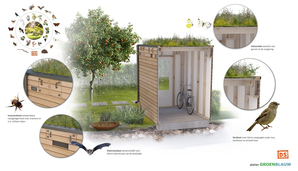 Hiltrud Pötz, oprichter van atelier GROENBLAUW, is een veelgehoorde naam in de wereld van natuurinclusief. Naast vertoningen op onder andere het Nationaal debat Natuurinclusief Bouwen en haar bijdragen aan onder andere het DuurzaamDoor-programma en het actieprogramma ‘Klimaatadaptief bouwen met de natuur’, is Pötz misschien wel het meest bekend van het Natuurschuurtje. Dit iconische voorbeeld van een alledaagse natuurinclusieve toepassing ontwierp Pötz in samenwerking met Maike van Stiphout van DS Landschapsarchitecten.
