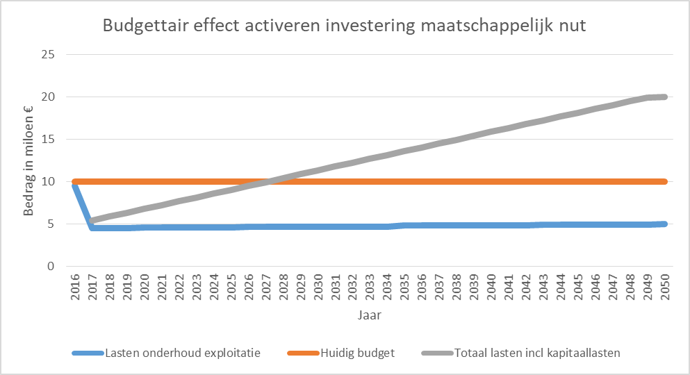 De verplichte activering van investeringen in beheerassets met maatschappelijk de kans nut biedt de beheerder vooral de financiële ruimte om op kortere termijn achterstanden weg te werken en vervangingspieken op te vangen. Het vraagt tegelijk een goed besef van èn het anticiperen op de rekening die hiervoor in de toekomst moet worden betaald.