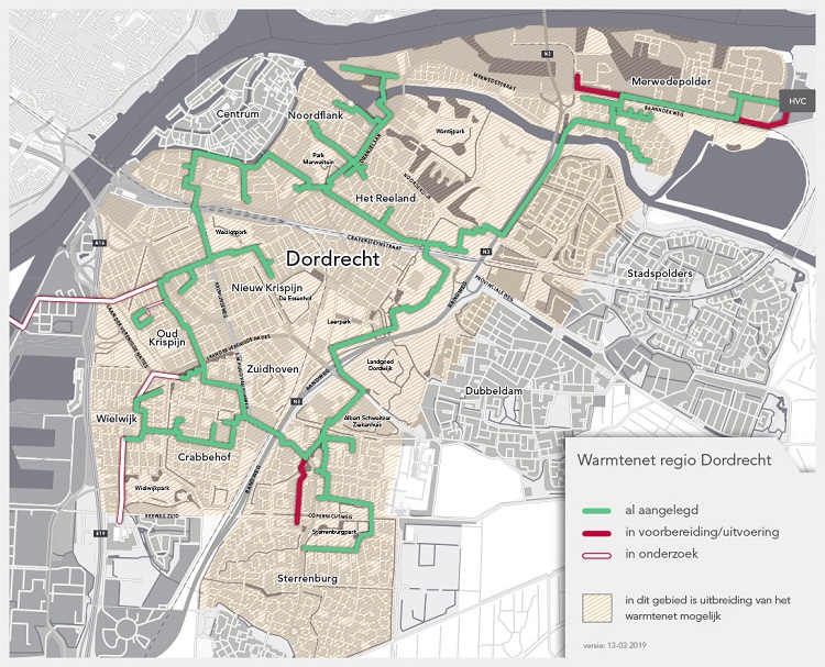 Het warmtenet is ruim 22 kilometer lang en aangelegd in circa zes jaar tijd. In Dordrecht zijn nu ca. 4.700 woningequivalenten aangesloten op het warmtenet. Eind 2019 zullen dat er ongeveer 6.000 zijn. Arjan ten Elshof, directeur Duurzame Energie van HVC: “Daarmee wordt er 6.000 ton CO2 minder uitgestoten. Dat is te vergelijken met de CO2 reductie van ruim 35.000 zonnepanelen.”